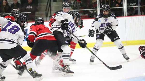 The Amherst Student • 2nd April 2025 Some Joy in Mudville: Hockey Spirits High Despite Loss Amherst women’s hockey shows resilience and heart in a tough NCAA championship loss.